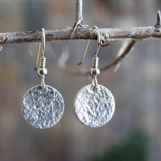 Sterling Silver Hammered Disc Earrings Argentium Silver