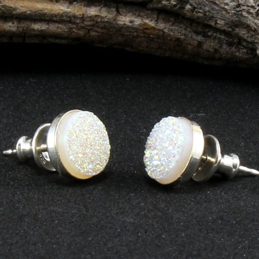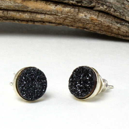 Black Druzy Stud Earrings in .925 Sterling Silver