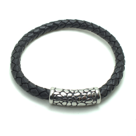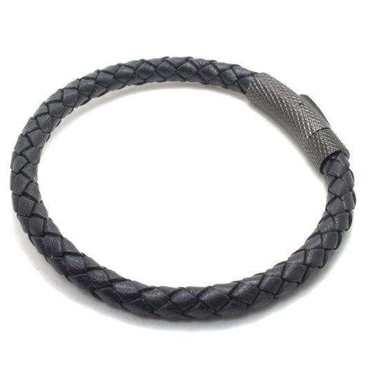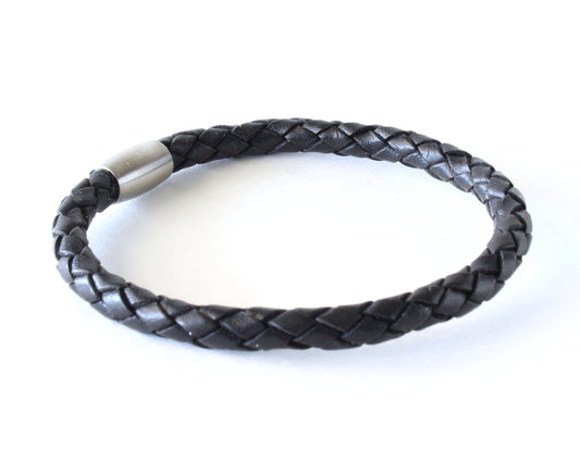 Black Braided Leather Bracelet with Stainless Steel Clasp