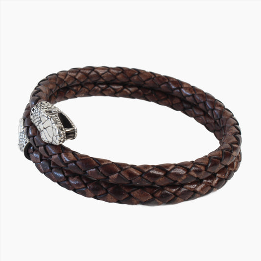 Braided Leather Bracelet with Twin Snake Heads – Handcrafted Symbol of Transformation