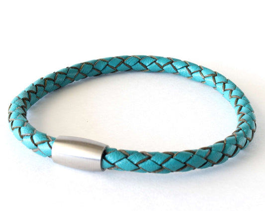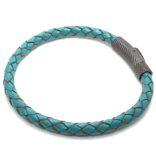Turquoise Braided Leather Bracelet – Minimalist Unisex Style