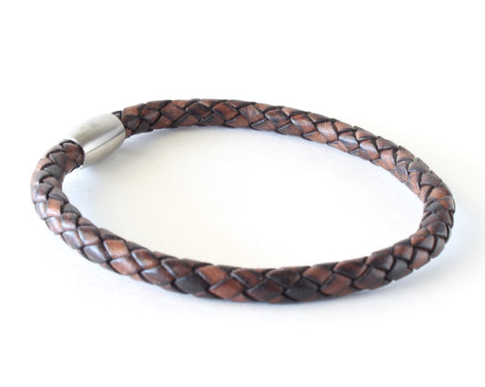 Natural Antique Brown Braided Leather Bracelet – Minimalist Style
