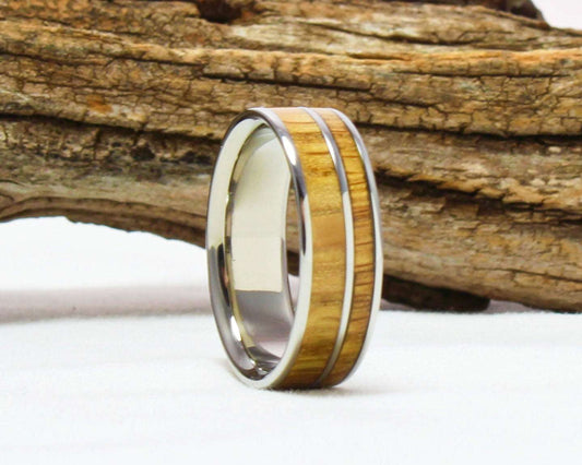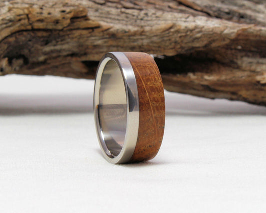 Titanium Ring with Whiskey Barrel wood