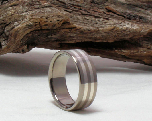 Titanium Sterling Silver inlay Ring, Titanium Silver Pinstripe