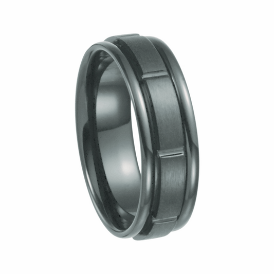 Black Titanium Satin and Polished Grooved Band, 7mm Width