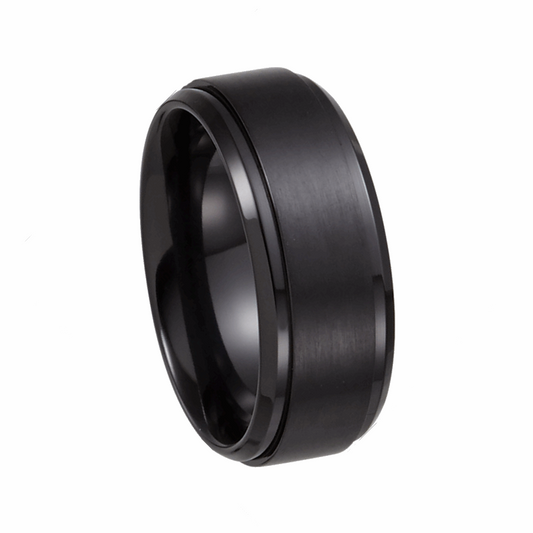Black Titanium Satin and Polished Ridged Band, 9mm Width