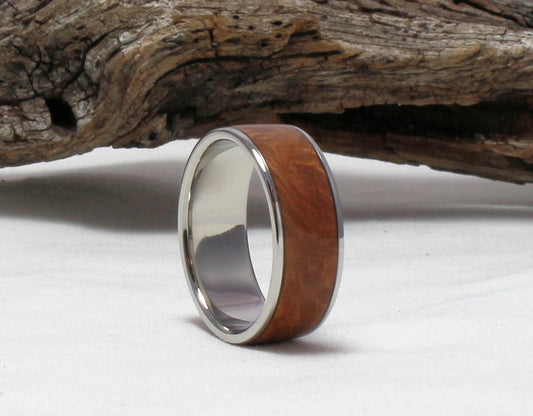 Titanium Ring with Maple Burl Inlay