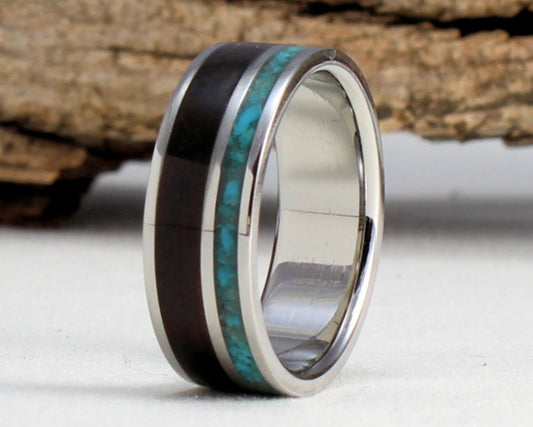 Titanium Ring with Turquoise and Ebony Inlay