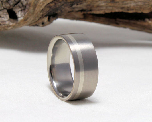 Titanium Band with Sterling Silver Pinstripe Brushed Finish