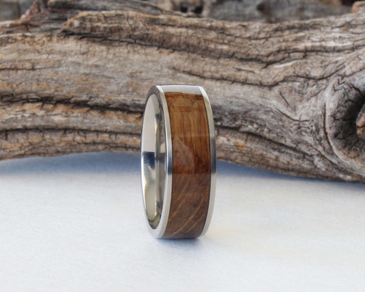 Titanium Ring with Whiskey Barrel wood