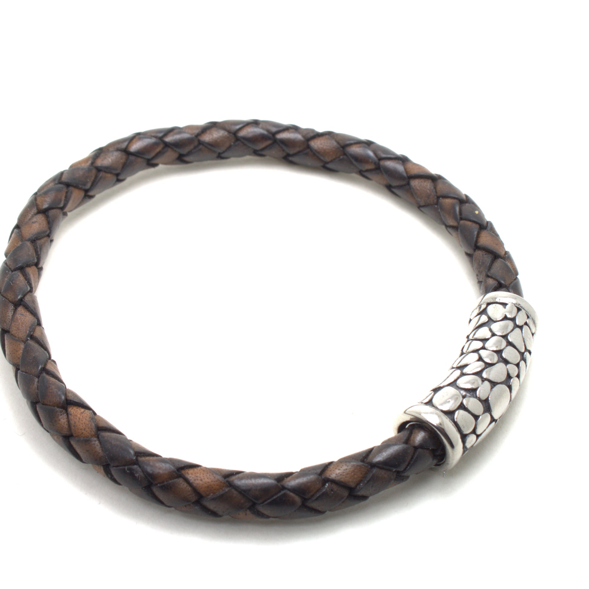 Elevate your everyday style with this handcrafted antique brown braided leather bracelet, designed for those who love natural textures with a modern edge. The genuine antique brown leather is tightly woven for durability and comfort, while the metallic clasp features a unique pebble-textured design that adds an artisanal touch.