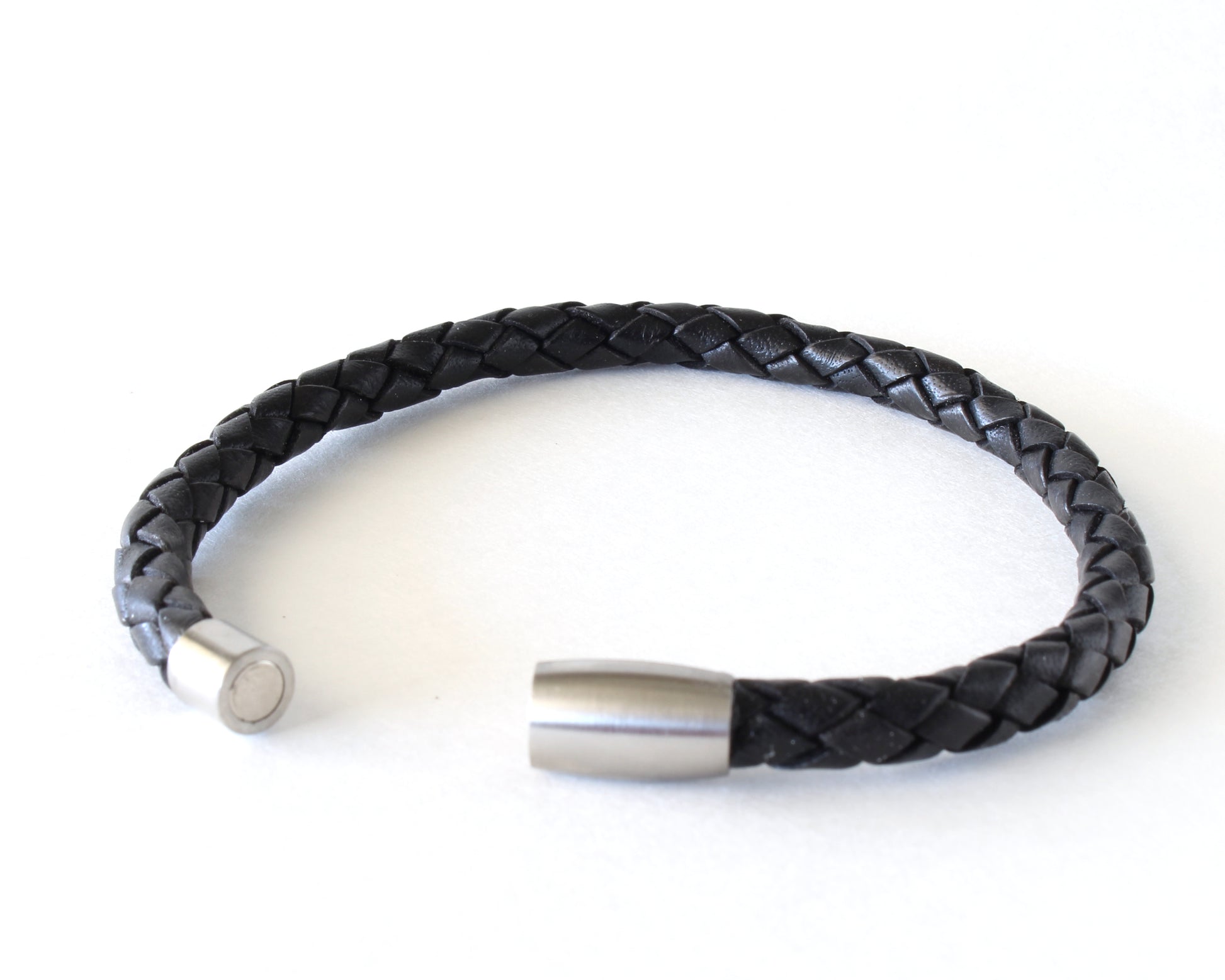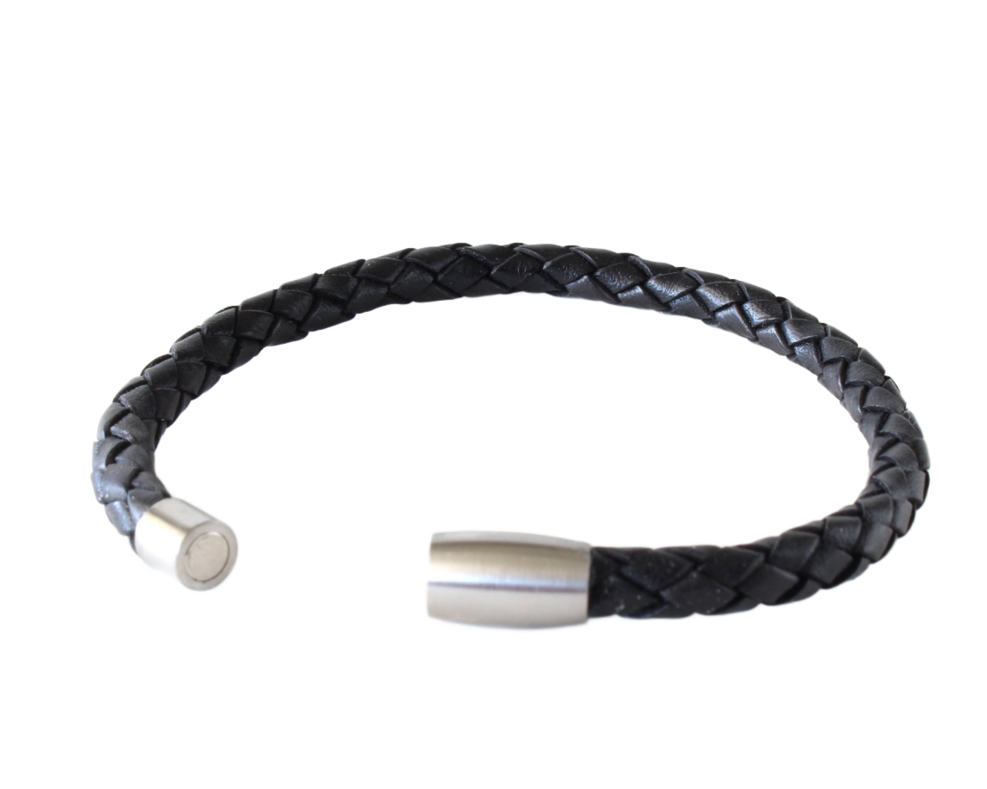 Black Braided Leather Bracelet with Stainless Steel Clasp