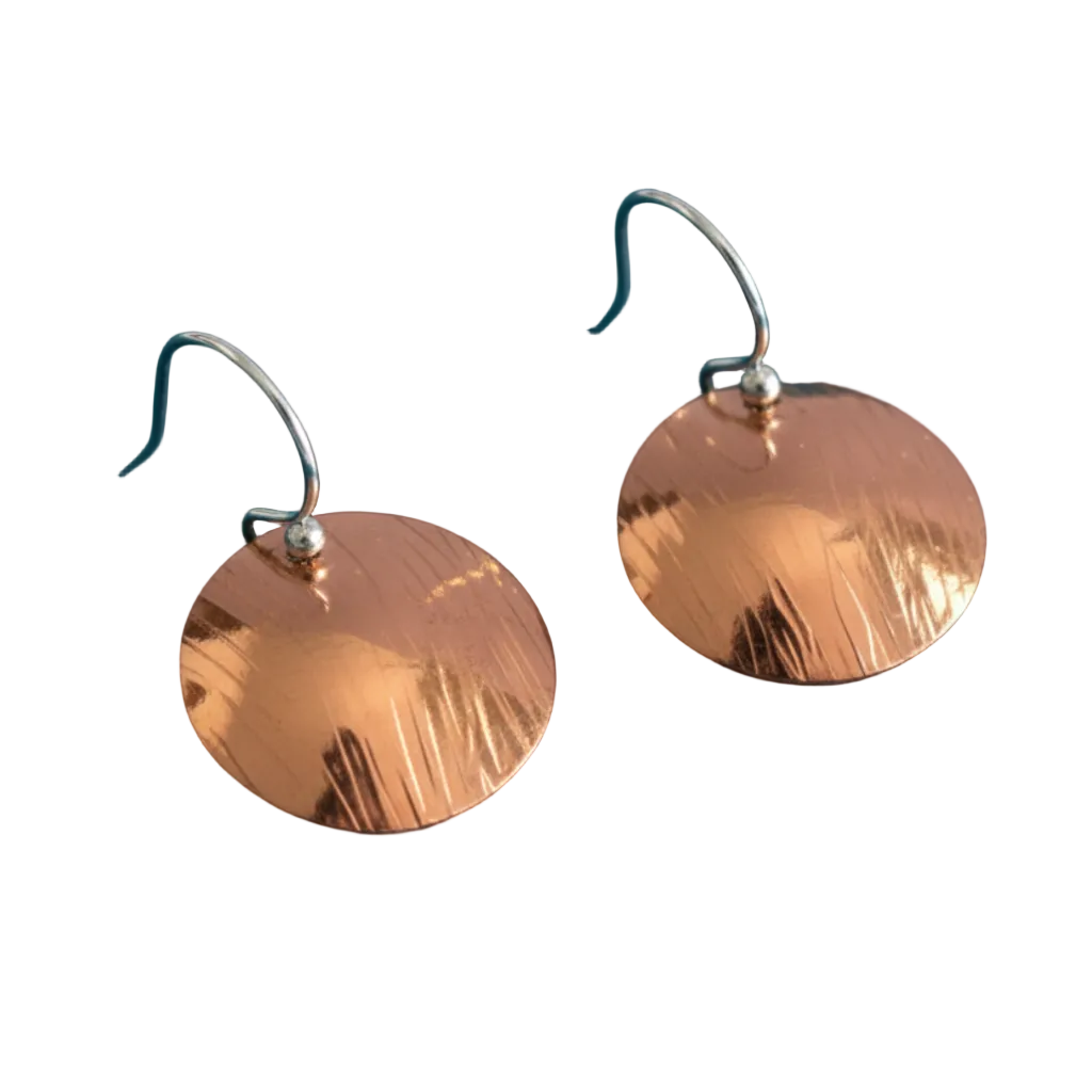 Catch the light and turn heads with these charming copper domed disc earrings. Handcrafted with a hammered textured finish that catches the light beautifully, each pair features sterling silver ear wires for comfort and durability. The warm copper tone pairs beautifully with any skin tone and works equally well dressed up or down. A playful everyday essential that brings artisanal flair to your jewelry rotation.