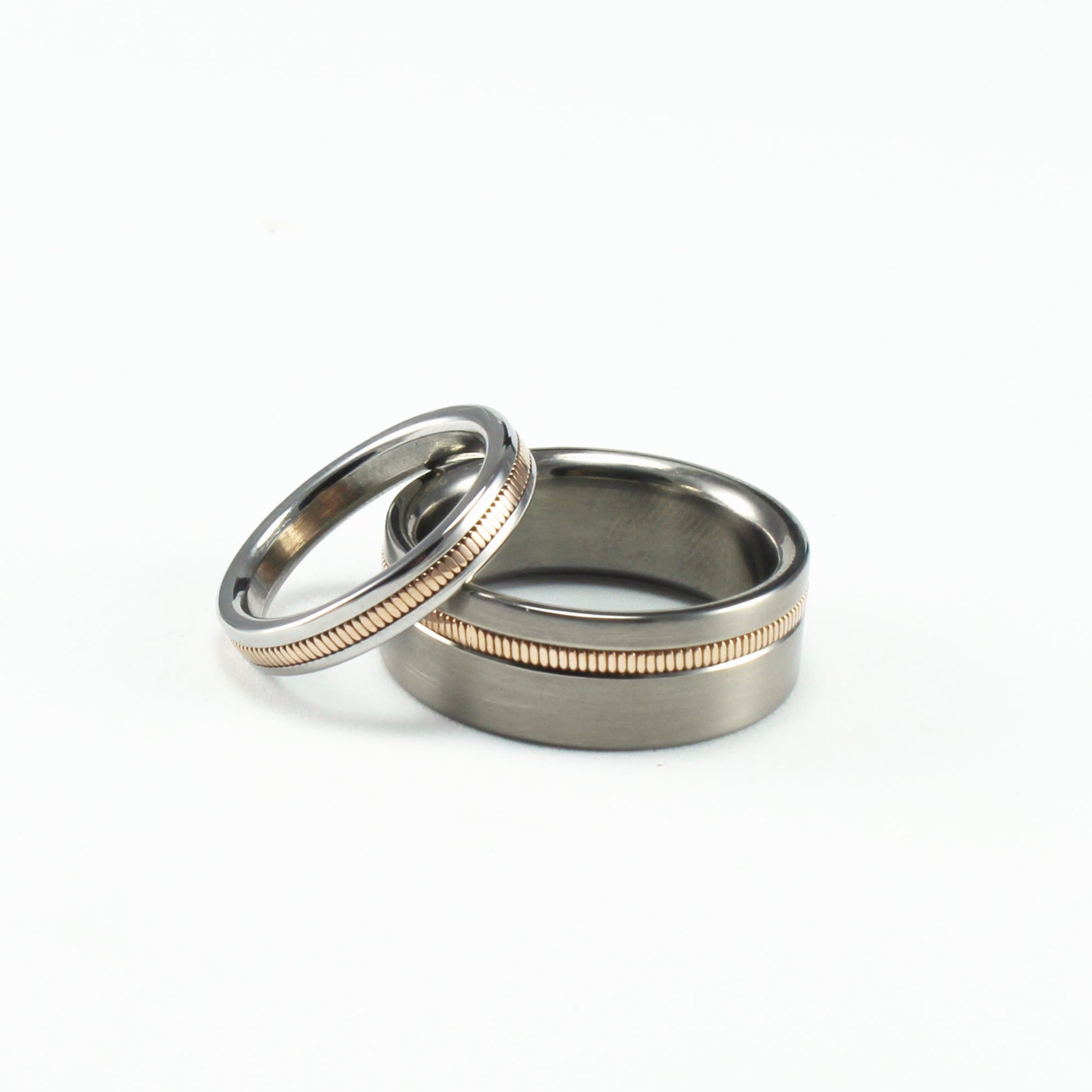 The ring is crafted by carefully inlaying the bronze string into the Titanium, using a technique that has been practiced for thousands of years. This process gives the ring its distinctive and unique appearance.