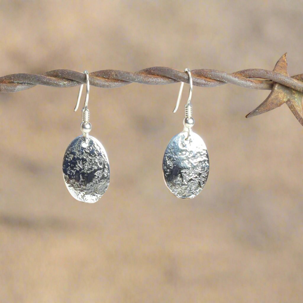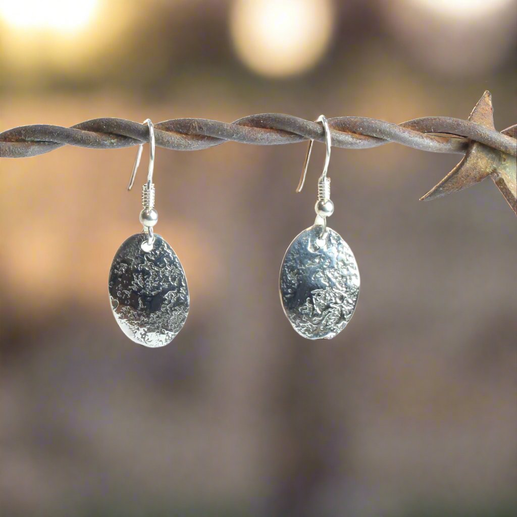 Sterling Silver Textured Oval Earrings