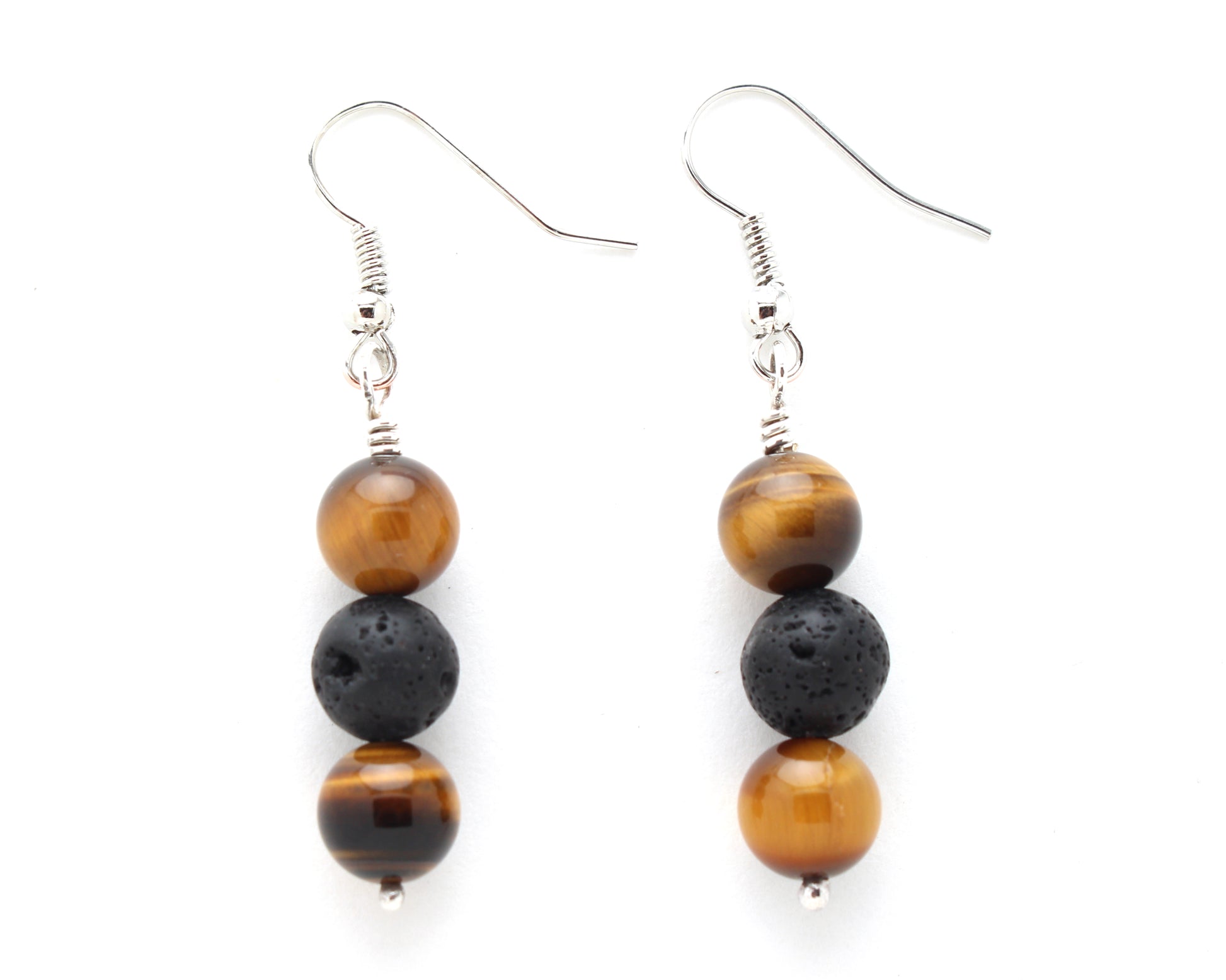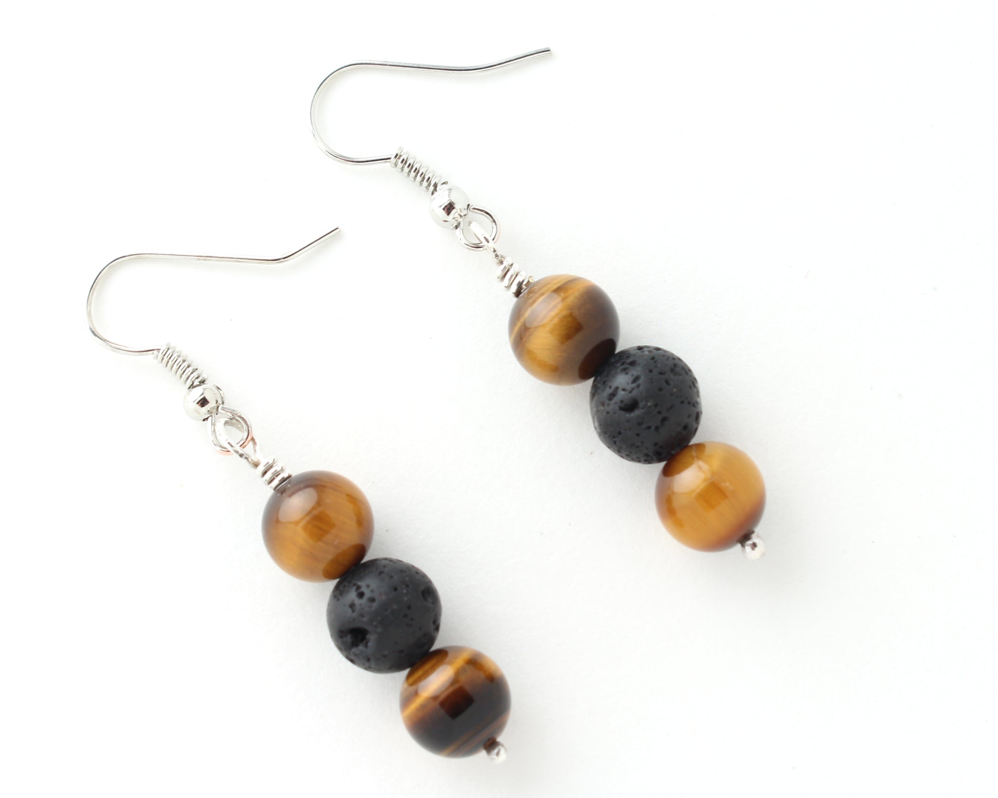 Sterling Silver Lava Rock and Tiger Eye Earrings