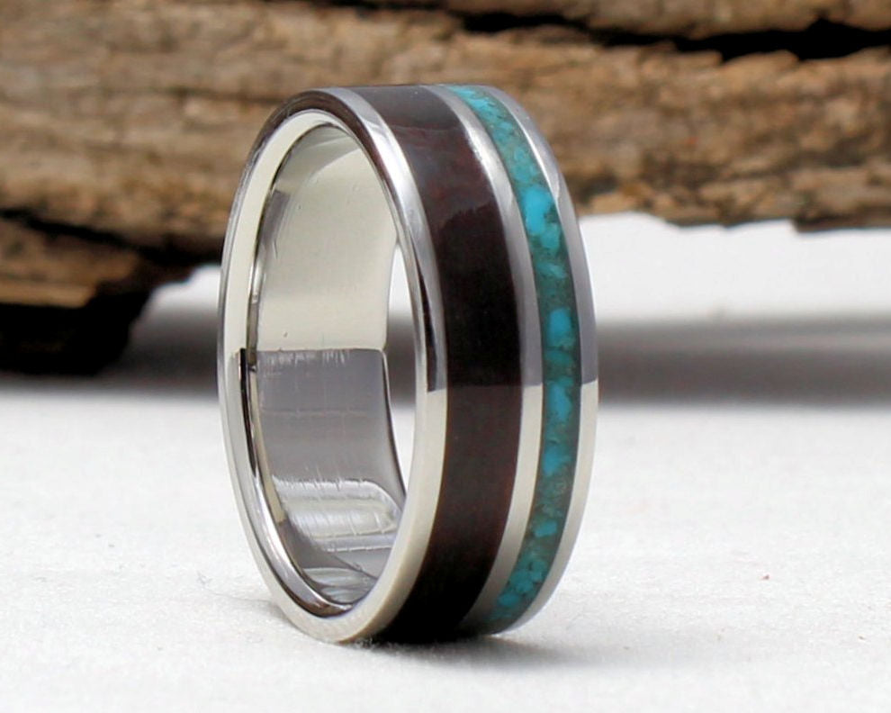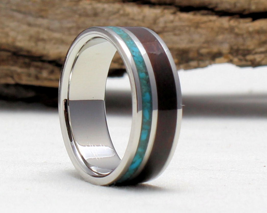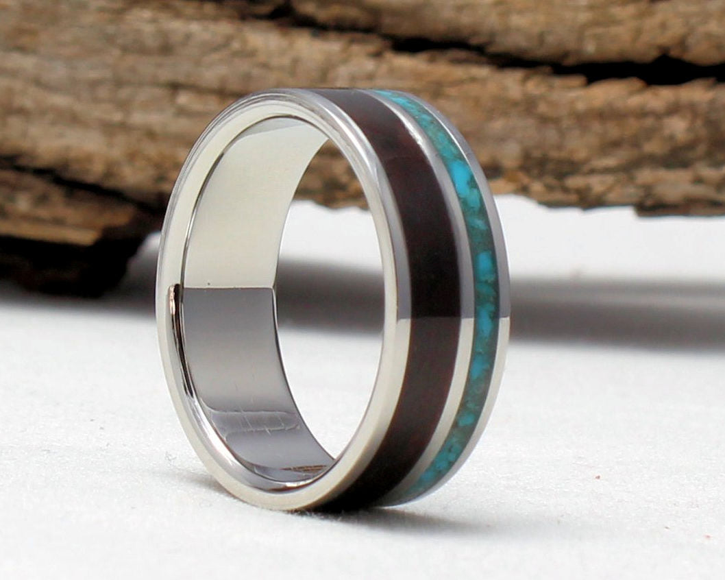 Handcrafted Titanium ring with Turquoise and Ebony Wood Inlay.